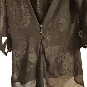 Features: Scoop Neck, 3/4 Sleeve, Button Detail on Both Sleeves, Sheer