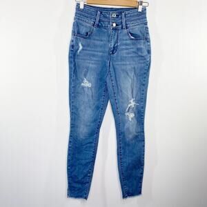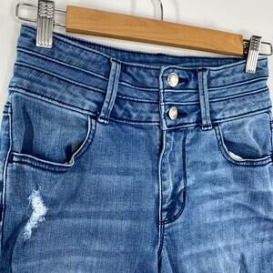 Maurices Super High Rise Distressed Double Button Skinny Denim Jeans Size XS