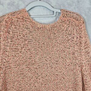 Maurices Sweater Tunic Womens XL Pink Tan Ribbon loose knit Layer Hippie boho