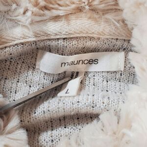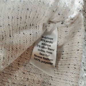 Maurices Sweater Women 7 Cream Metallic Sparkle Knit Faux Fur Cowl Neck Pullover