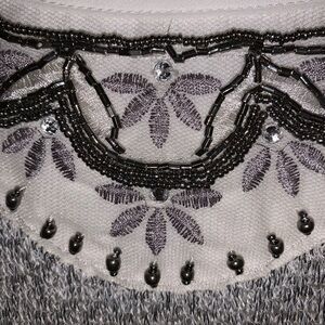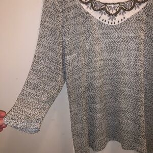 Maurices Black and white sweater with silver jewel embellished neckline.