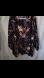 This is a long-sleeved blouse, floral design over navy blue. At the top of one shoulder, there are three buttons that can be used or decorative.