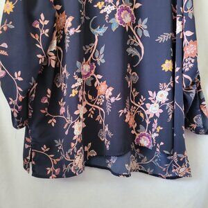 Maurice's Sz 3 (3X) GORGEOUS Blouse Floral Long roll tab sleeves flowy silky EUC