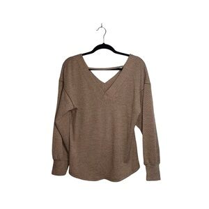 Maurices Tan & Black Printed Sweater V-neck Open Back Pullover Small Women’s