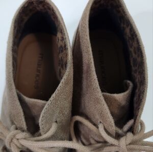 Maurices Tan Wedge Lace Up Ankle Booties Womens Sz 6 Faux Suede