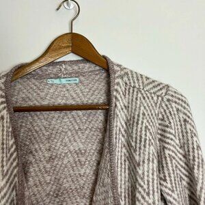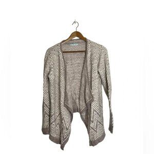 Maurices Tan/White Soft Chevron Stripe Open Waterfall Drape Cardigan Sweater