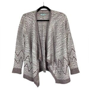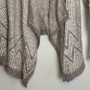 Maurices Tan/White Soft Chevron Stripe Open Waterfall Drape Cardigan Sweater
