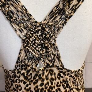 Maurices Tank Top Shirt Womens Small Brown animal print Round Neck Cross Back