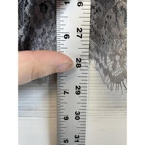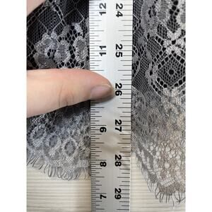 Color: Gray lace overlay with black inner lining; scalloped eyelash hem detail