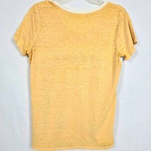 Maurices mustard yellow short sleeve V-neck graphic tee with white and denim-style stripe accents. Features “This Ain’t My First Rodeo” across the chest. Made of 52% cotton / 48% polyester for a soft, vintage feel.