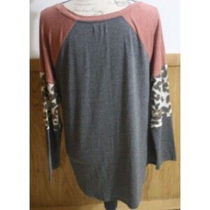 Maurices Tie Knot Front Leopard Print Sleeves Pullover LS Top Multi-color Blouse