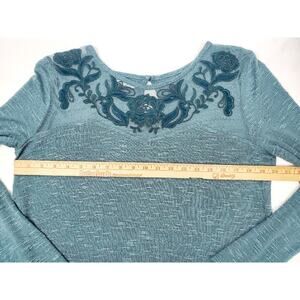 Maurices Top S Teal Round Neck Lace Long Sleeve Knit Sweater Womens Size Small