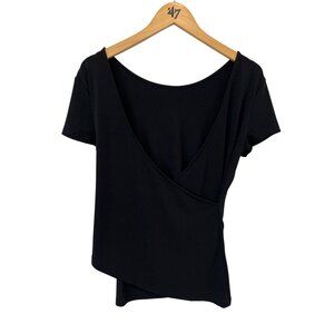 Maurices Top Size Small Surplice Wrap Short Sleeve Solid Black Contemporary NEW