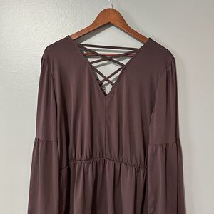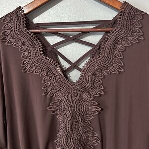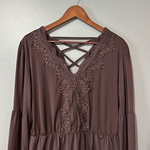 Maurices Top XL Womens Boho Lace Strappy Burgundy Stretchy Peplum Witchy Long