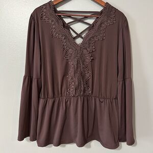 Maurices Top Size XL Womens Boho Lace Strappy Burgundy Stretchy Peplum Witchy