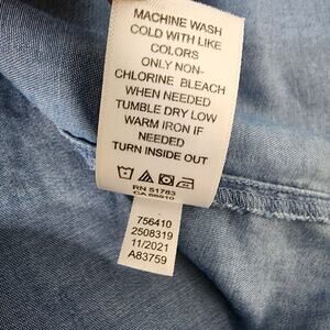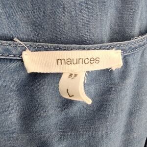 Maurices Top Womens Chambray Large Blue Button Front V Neck Pockets Short Sleeve