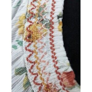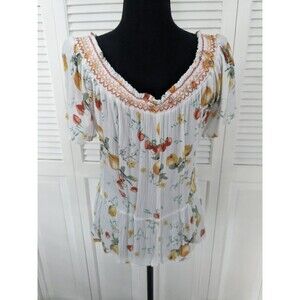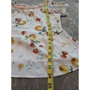 Maurices Top Womens Sz M Citrus Print Crinkle Short Sleeve Smock Elastic Ruffle