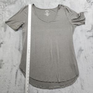 Maurices Top Womens XL Green White Striped 24/7 V-Neck Tee Short Sleeves Stretch Rayon