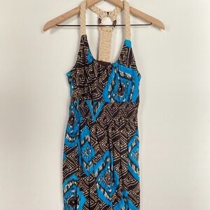 Maurices Tribal printed Maxi dress with roped straps & wood clasp on back, Size S, Pre-owned in great condition with no rips or stains.
