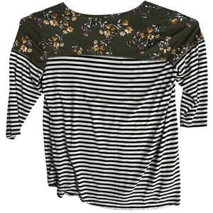 Maurices Tunic Top Women Size L Green White Striped Rayon Blend PILLING