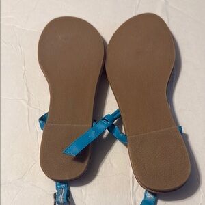 Chic turquoise sandals with sleek silver accents. Ideal for warm weather.