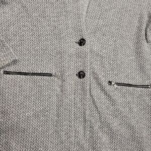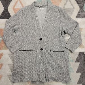 Women’s sweater jacket. Button front with zippered pockets. Longline tunic length.