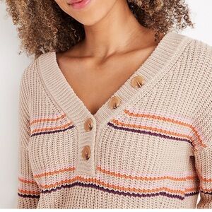 Maurices V-Neck Sweater with Button Accents - Cream and Orange Stripes