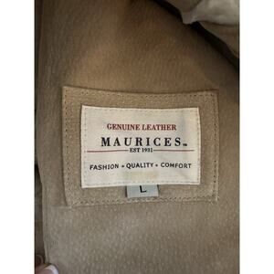 Maurices Vintage Tan Suede~White Fur Jacket/Coat Zip Up Y2K Hooded Women’s Large