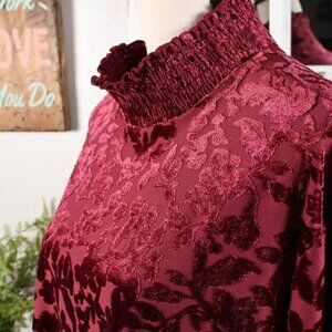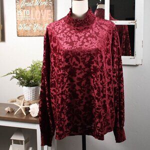 Maurices Whimsigoth Velvet-Like Burnout Floral Mock Neck Top - Size 3X