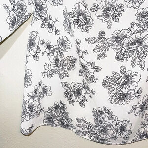 Maurices white & black floral off the shoulder top. In excellent condition! Fitted off the shoulder neckline. Double ruffles across the chest & backside. Cropped sleeves & cinched at the cuffs. True white color with black flowers. Size medium.