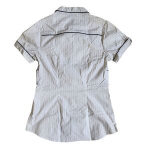 Maurices White Black Pinstripe Collared Short Sleeve Button Front Top sz S