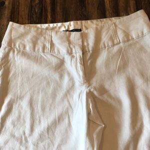 Maurice’s White Gaucho capris. 55% Linen & 45% Rayon. Some wear. No holes. Silk lined waistline inside pant.