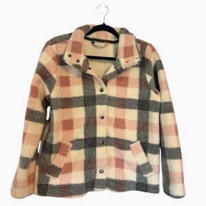 Maurices White Gray Pink Plaid Sherpa Jacket Coat, Size M