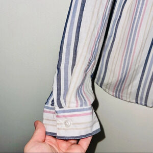 Maurices White & Multicolor Pastel Striped Button Down Shirt Large Women’s