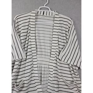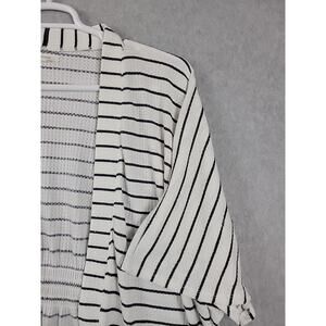 Maurices White Striped SS Waffle Knit Smocked Back Cardigan Women Plus 2X 3X