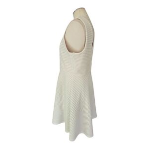 This Maurices sleeveless white fit-and-flare dress is a flattering and versatile piece, perfect for spring and summer events. Crafted from a soft and stretchy poly/spandex blend, it features a structured V-neckline, textured stripe detailing, and a flowing A-line silhouette. Great for casual days, brunches, or even dressed up for a party or shower.