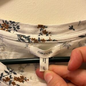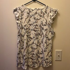 Maurices White floral Blouse with small ruffled sleeves size L