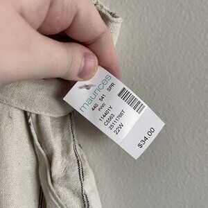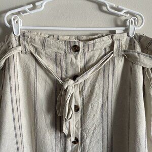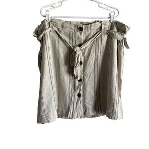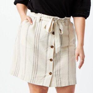 Maurices Women 22W Ivory Striped Linen Blend Pockets Belted High Rise Utility Mini Skirt.