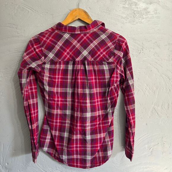 Maurice's Woman's Collared V-neck Button down Plaid Shirt Size Small