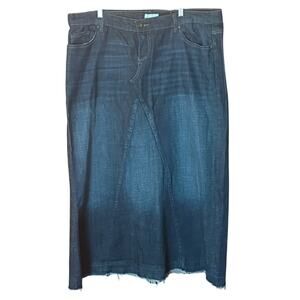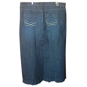 Maurices Women 18 Dark Wash Pockets Raw Fray Hem Maxi Denim Jean Skirt
