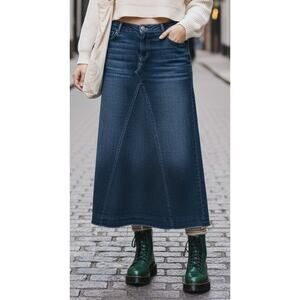 Maurices, Women 18, Dark Wash Denim-- Button/Zipper Closure, 5 Functional Pockets, Raw/ Fray Hem, Maxi Length, Denim Jean Skirt