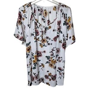 Maurices Women 4x White Floral Flutter Sleeve Flowy Keyhole Blouse