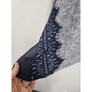 Maurices Women BOHO Tunic Top Size 2X Gray Navy Lace Sheer Back Long Sleeve