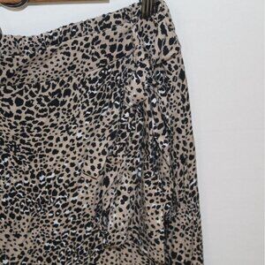 Maurices Women Brown, Black, White Animal Print Midi Skirt Wrap Design Size Med