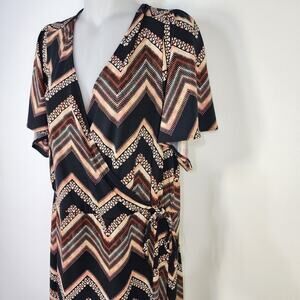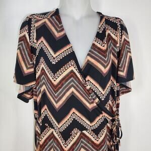 Maurices Women Chevron Wrap Dress Large Midi Aztec Short Flutter Sleeve High Low