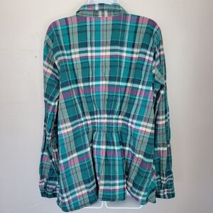 Maurices Women's 3 Plus Size 3X Teal Blue Purple Plaid Long Sleeve Shirt V-neck