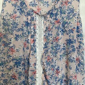 Maurices Women's 3X Multi Floral Babydoll Tank Plus Size Top Sheer Cottage Flowy