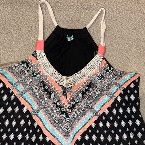 Maurices women’s aztec style print tank top. Size M. Back is a little adjustable to make it a wider width or more of a racer-back style. Front has a cute Aztec style multi-color print. Soft & flowy! Smoke/pet-free home with no tears, stains, etc. Make a reasonable offer!