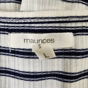 Maurices Womens Babydoll Peplum Tank Top Large White Navy Blue Striped Lace Up