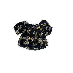 Maurices Womens Black Off-Shoulder Top With Yellow Leaf Print Size 2 1755